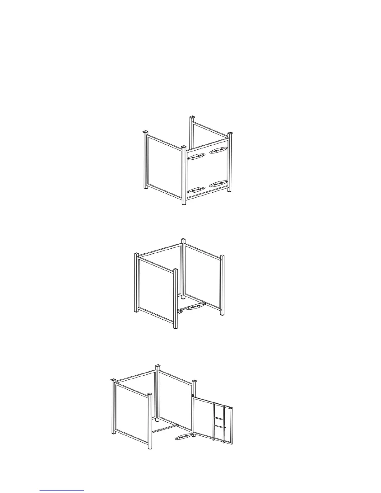 3. Attach the middle support to the side panels by using four 1/4"x15 mm bolts and