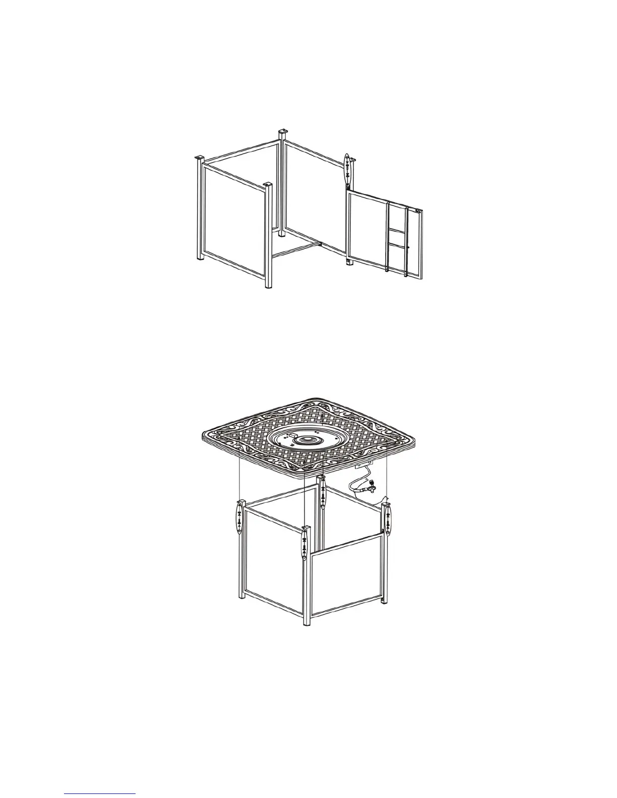 through the holes in the base, into the pre drilled holes in the table top. Do not tighten