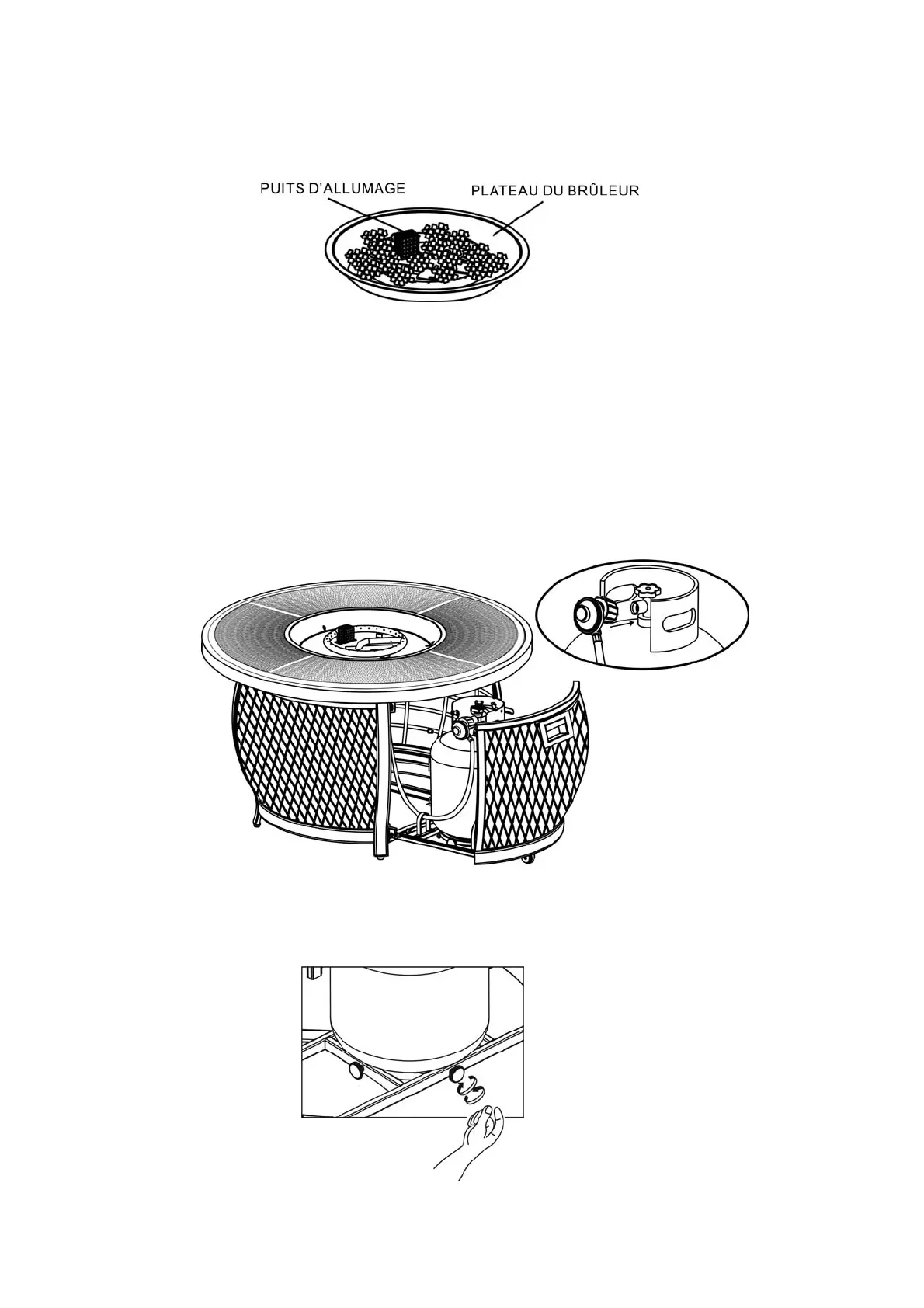 que la bonbonne de GPL ne puisse pas bouger. Ne pas enlever les capuchons en