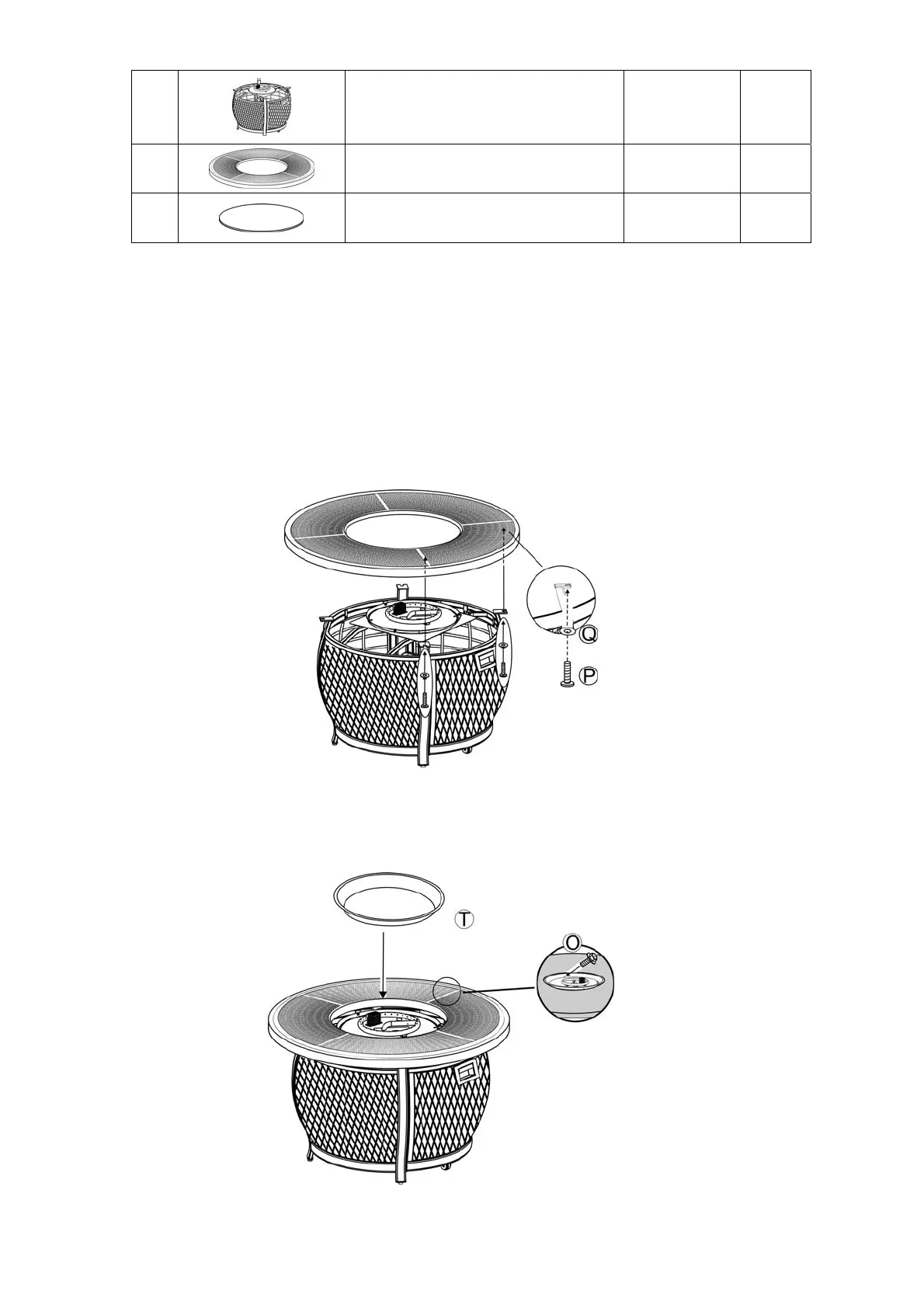 2. Place the firepit tabletop onto the firepit base. Secure the tabletop to the firepit base by