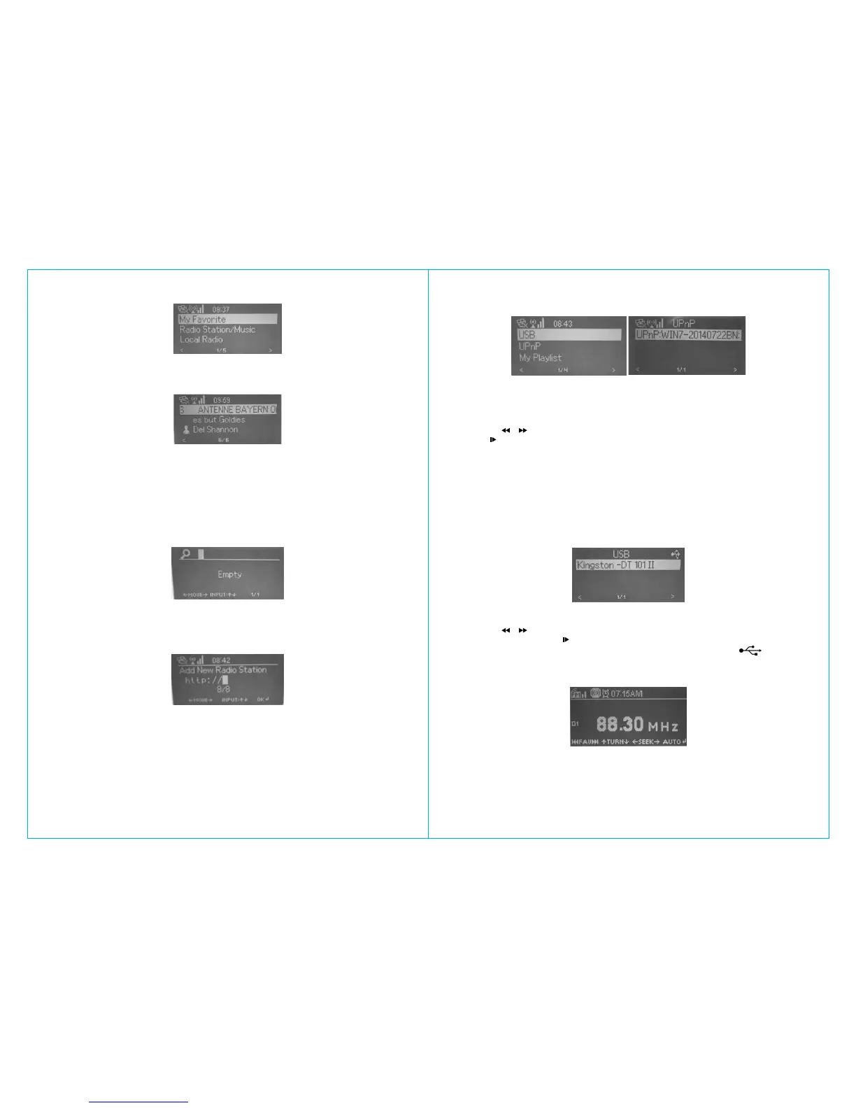 Appuyer et tenir le bouton “FAV” pour enregistrer les stations favorites. Vous pouvez stocker 250 stations de radio