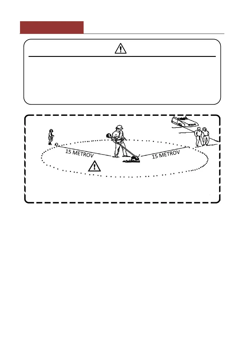 UPORABNIK MORA ZAGOTOVITI, DA MED DELOM V OBMOČJU 15 METROV NI DRUGIH OSEB ALI ŽIVALI. MED