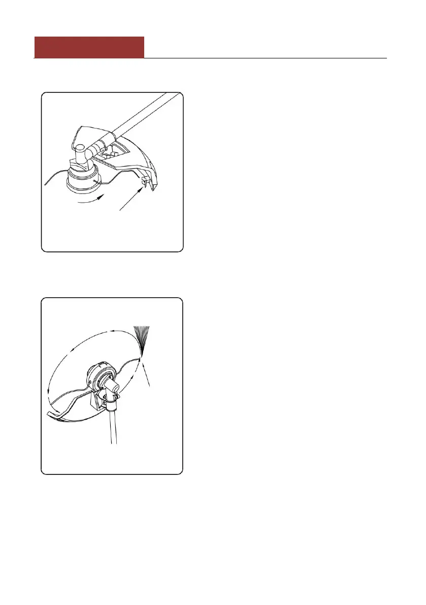 Rezalna glava z nitko se vrti v nasprotni smeri urinega kazalca. Nož za rezanje nitke