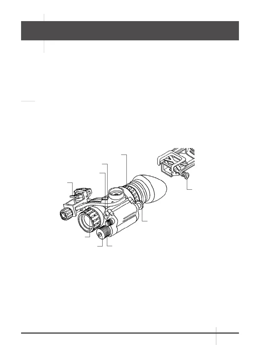 controls and indicators for the PVS-14 are shown in Figure 2-1 and described in Table 2-1.