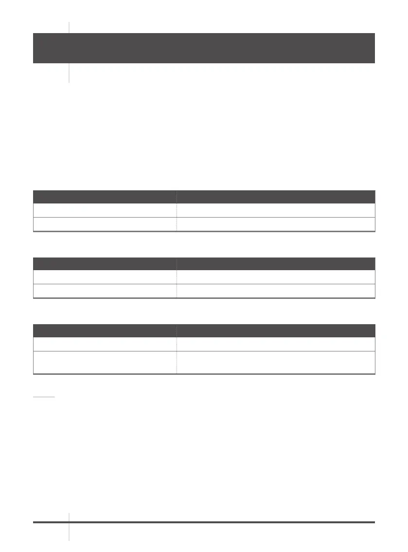 The following tables provide information pertaining to the operational, electrical, mechanical,