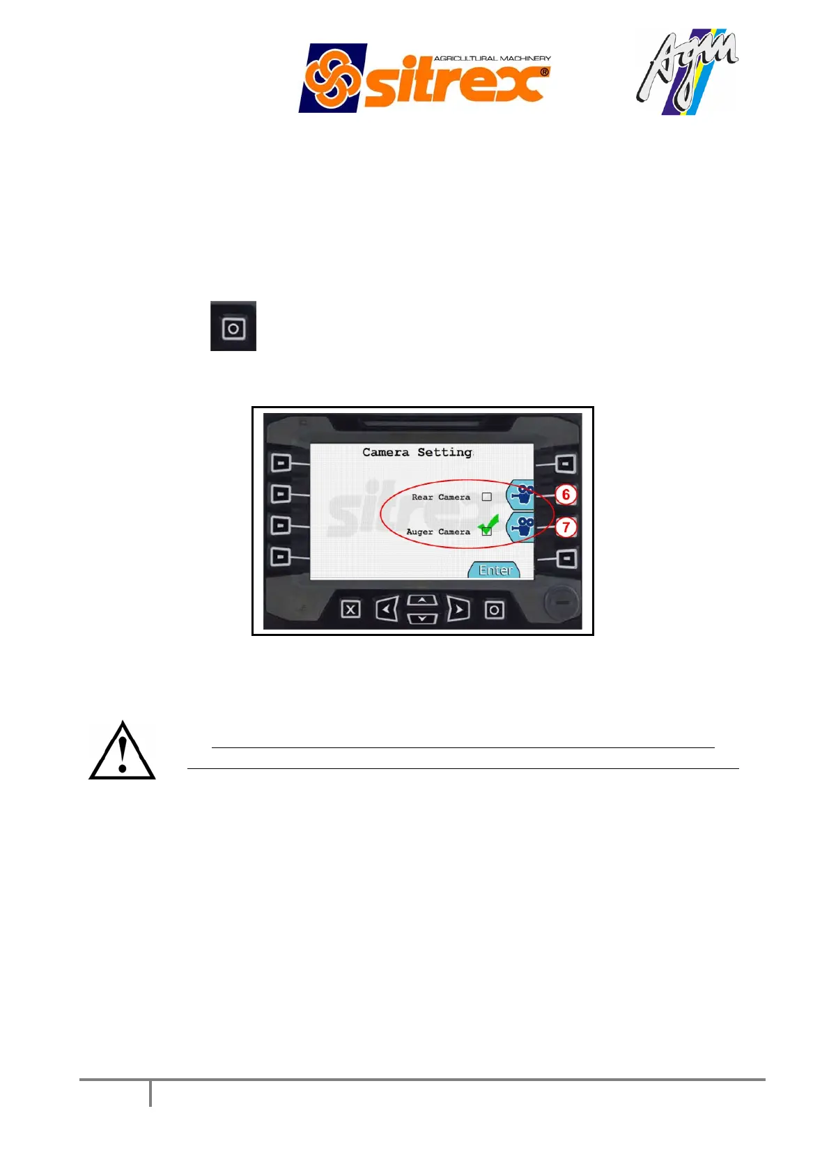 camera you want to turn on when pressing button 6 (either the mixing tank (auger) camera