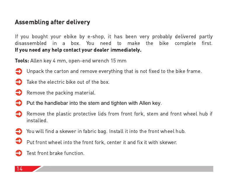 If you bought your ebike by e-shop, it has been very probably delivered partly