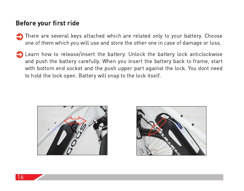 Learn how to release/insert the battery. Unlock the battery lock anticlockwise