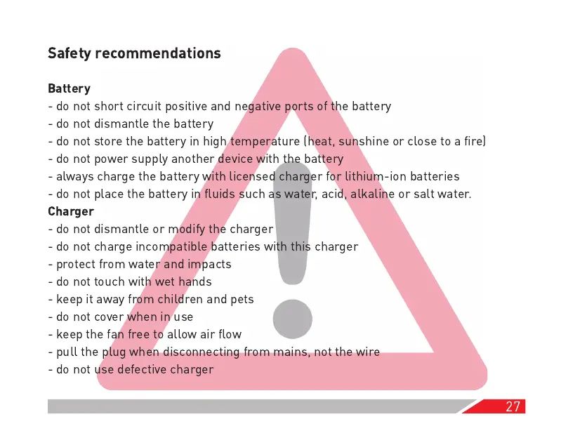 - always charge the battery with licensed charger for lithium-ion batteries