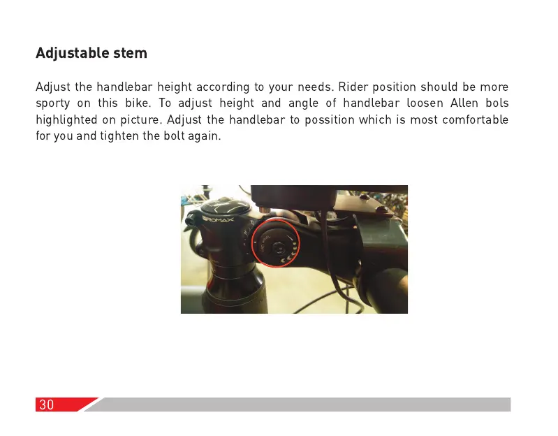 sporty on this bike. To adjust height and angle of handlebar loosen Allen bols