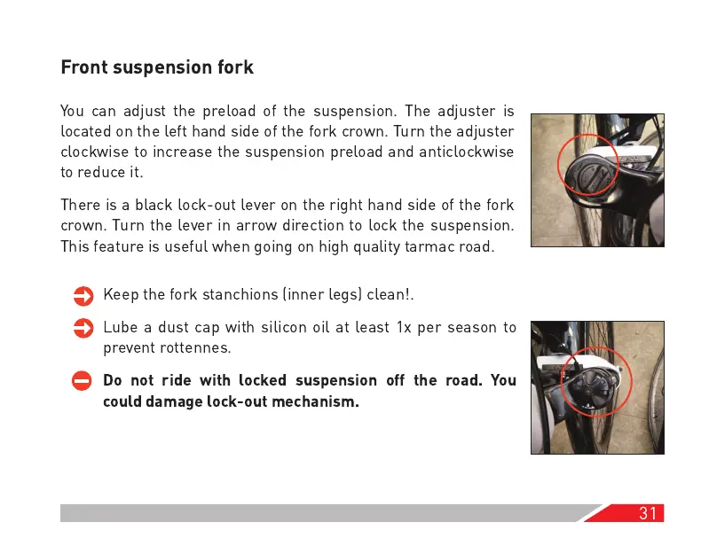 Do not ride with locked suspension off the road. You