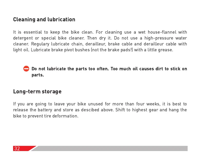 cleaner. Regulary lubricate chain, derailleur, brake cable and derailleur cable with