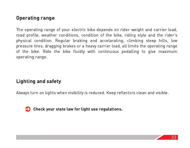 The operating range of your electric bike depends on rider weight and carrier load,