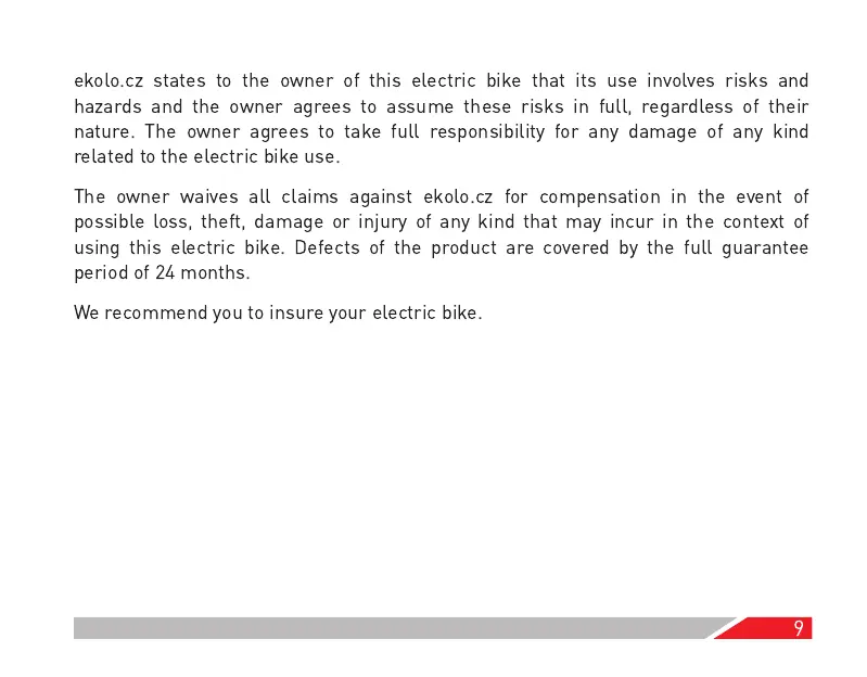 ekolo.cz states to the owner of this electric bike that its use involves risks and