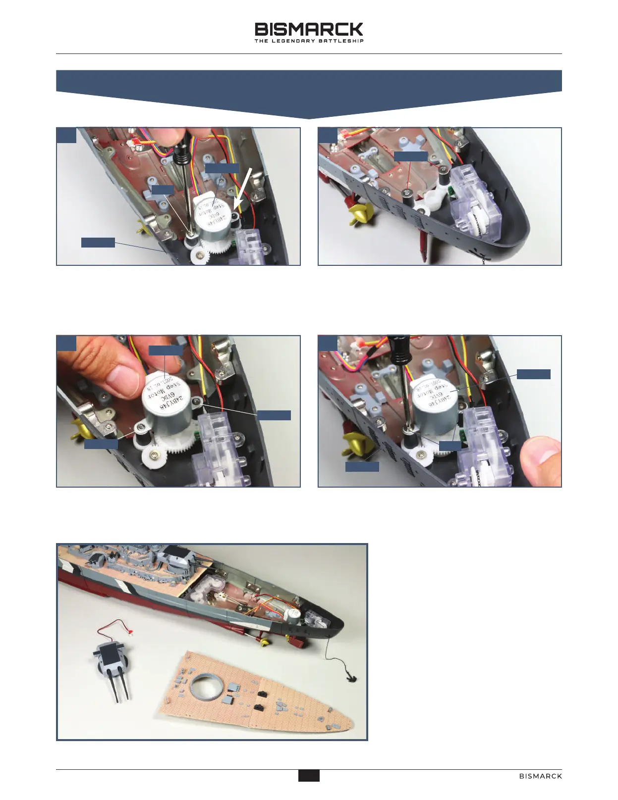 in place at the rear of the hull assembly. The arrow