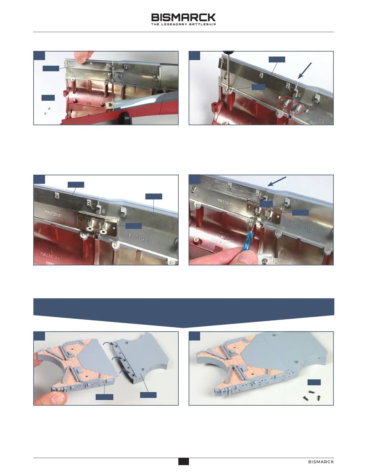 Fix hull section 23-01 in place with the screws. Don’t