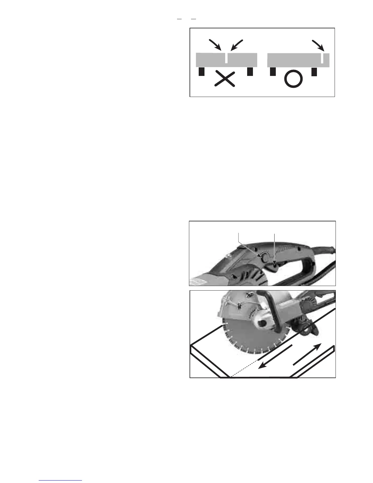 • Make note of the weight of the workpiece and the direction which it will fall when it is cut through.