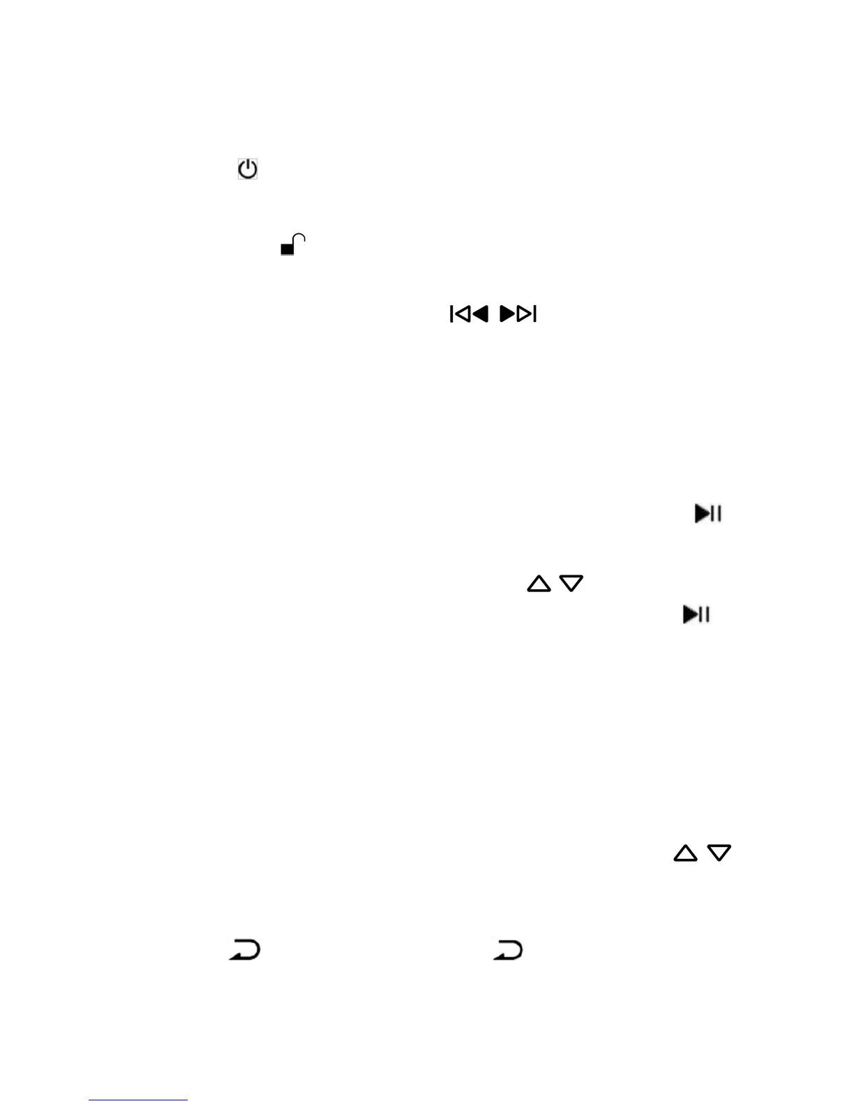 Sleeptimer, Bookmark etc. Use button / to choose from