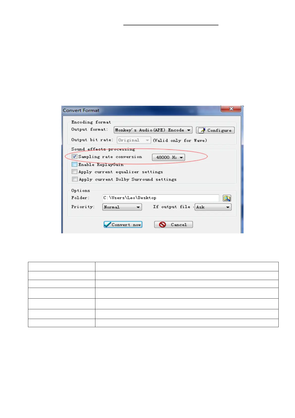 Step 3; Now Choose “Monkey’s Audio (APE)” and sampling rate conversion from 44000