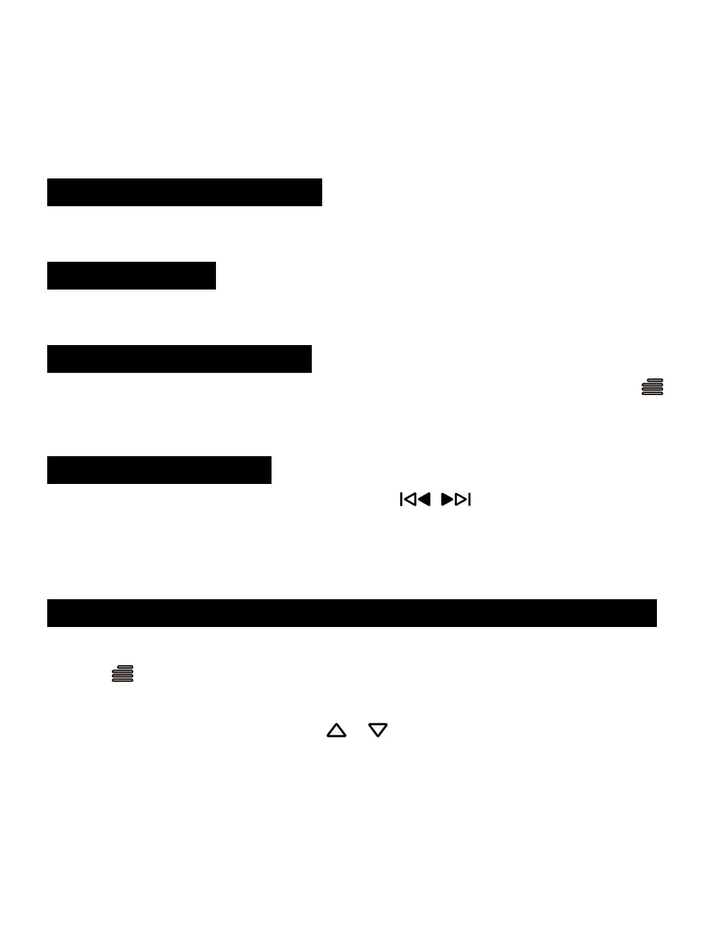 riproduzione, Impostazioni audio, Sleep timer, Segnalibri