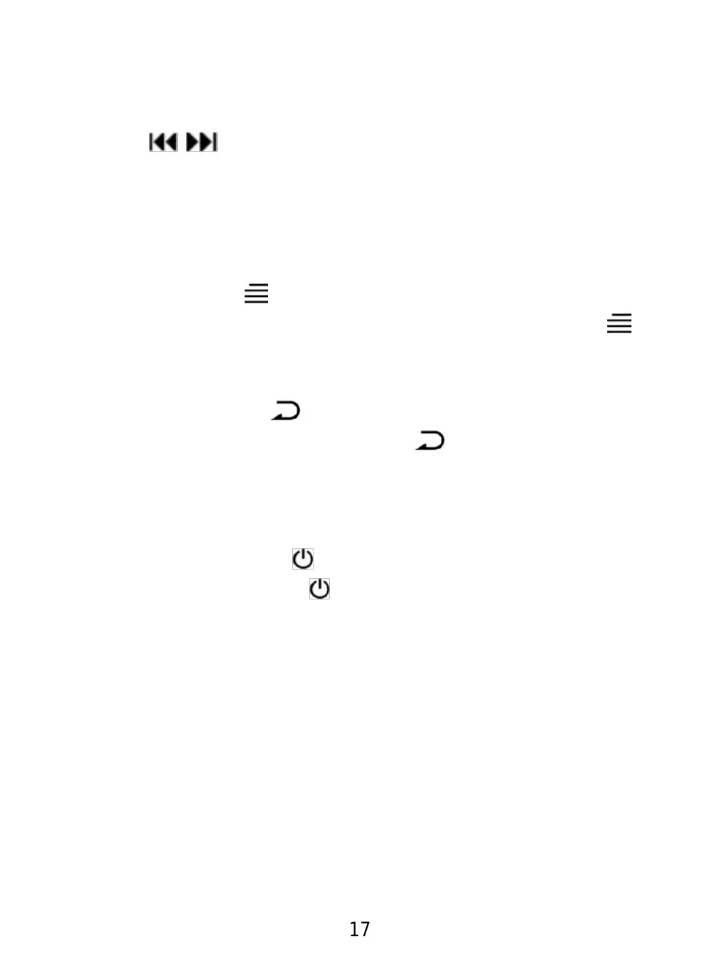 reproducir la canción siguiente/anterior, mantenga pulsado