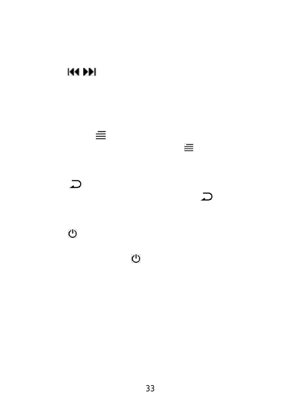 chanson precedente/suivante. Maintenez pour rembobiner/