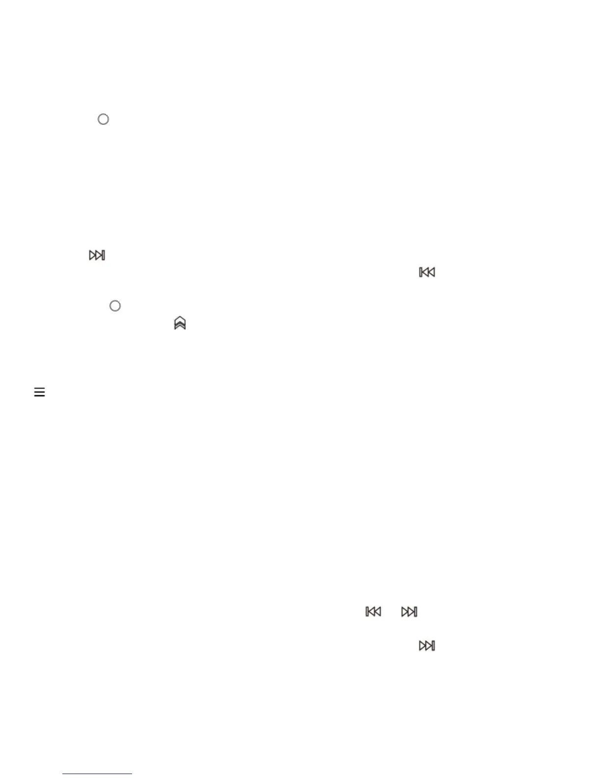 siguiente archivo de música; Sostenga el botón para rebobinar