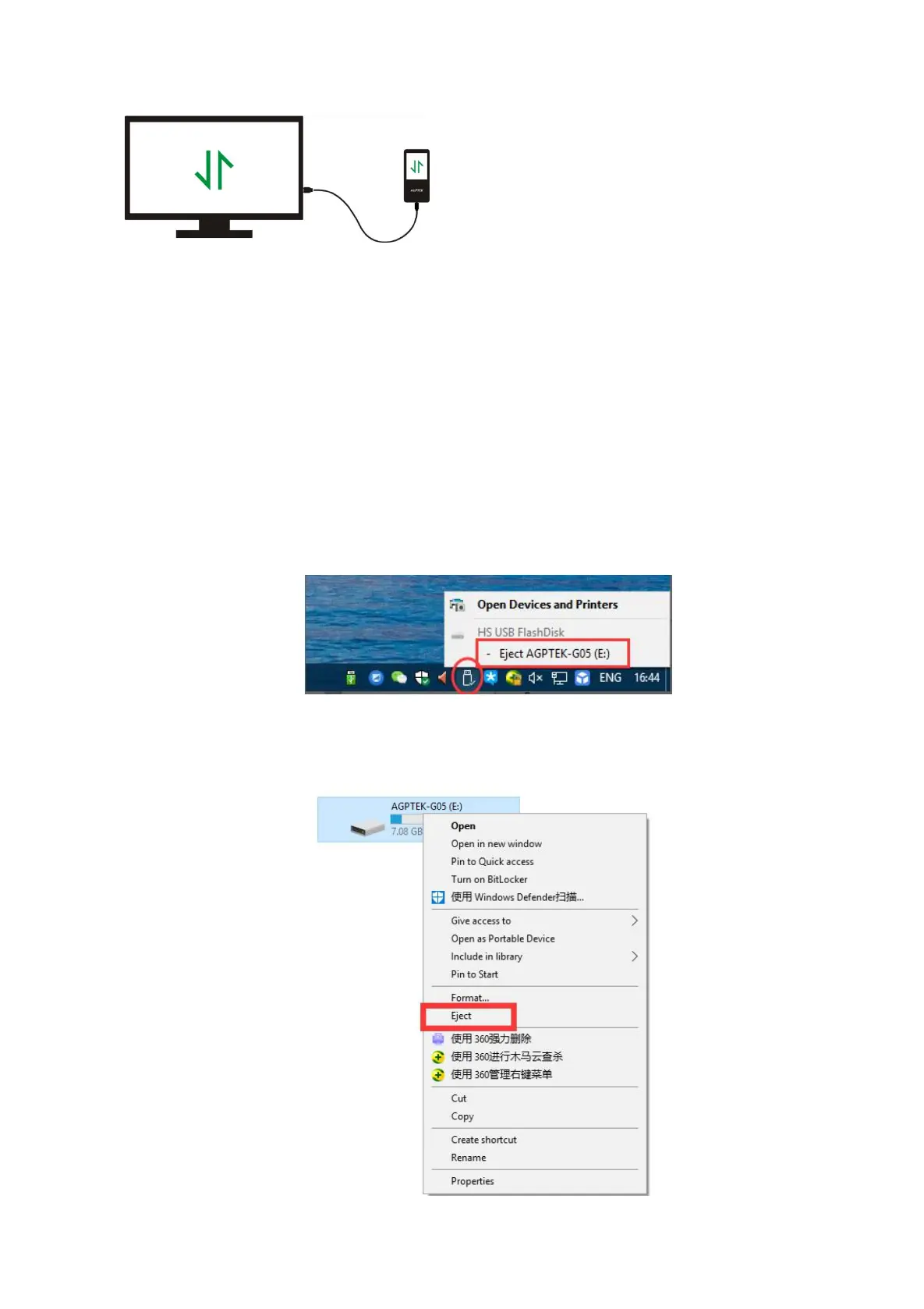 “Eject-AGPTEK-M30 PLAYER”.