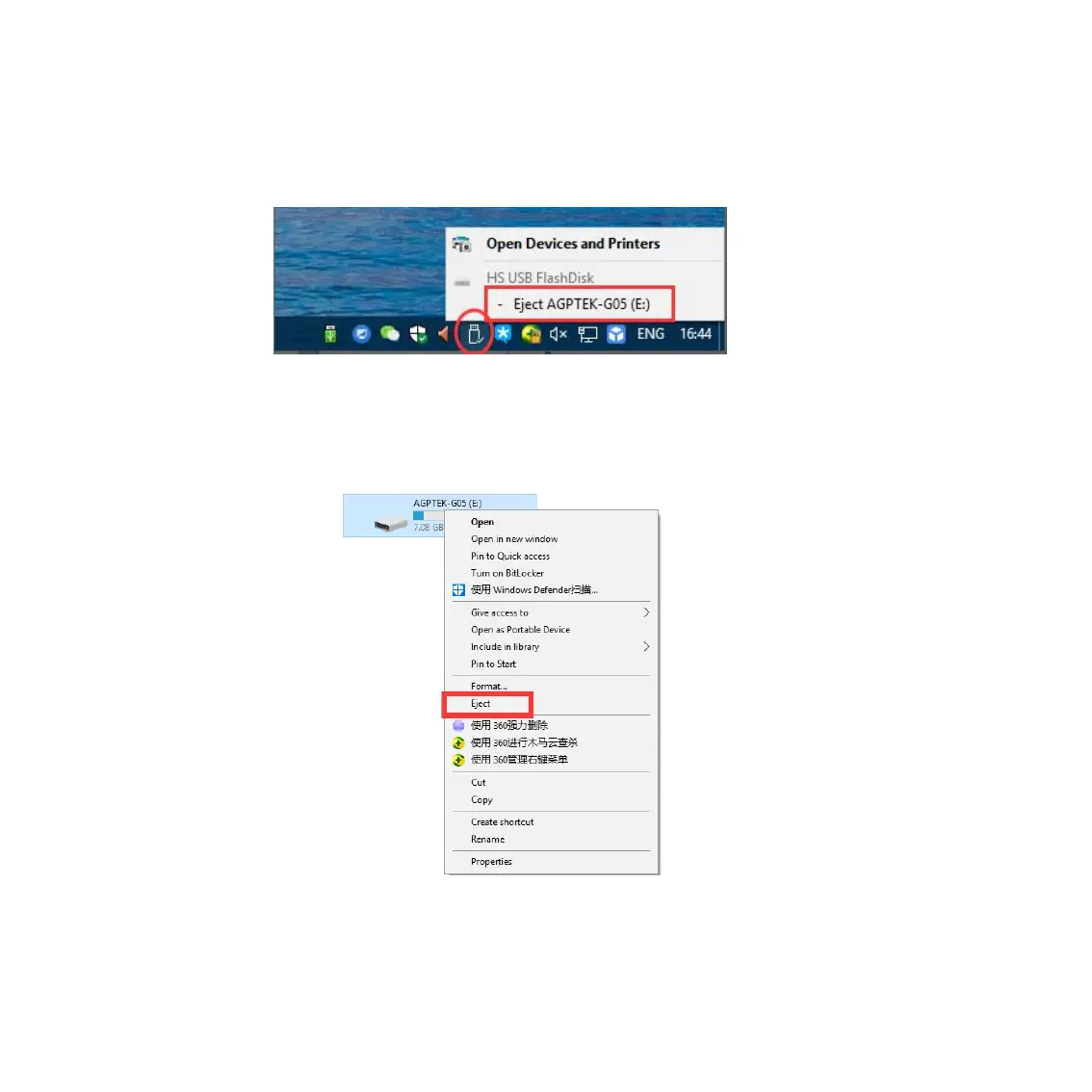 mouse sul disco AGPTEK-M6/M16, quindi fare clic su "Espelli" per disconnettere il lettore dal