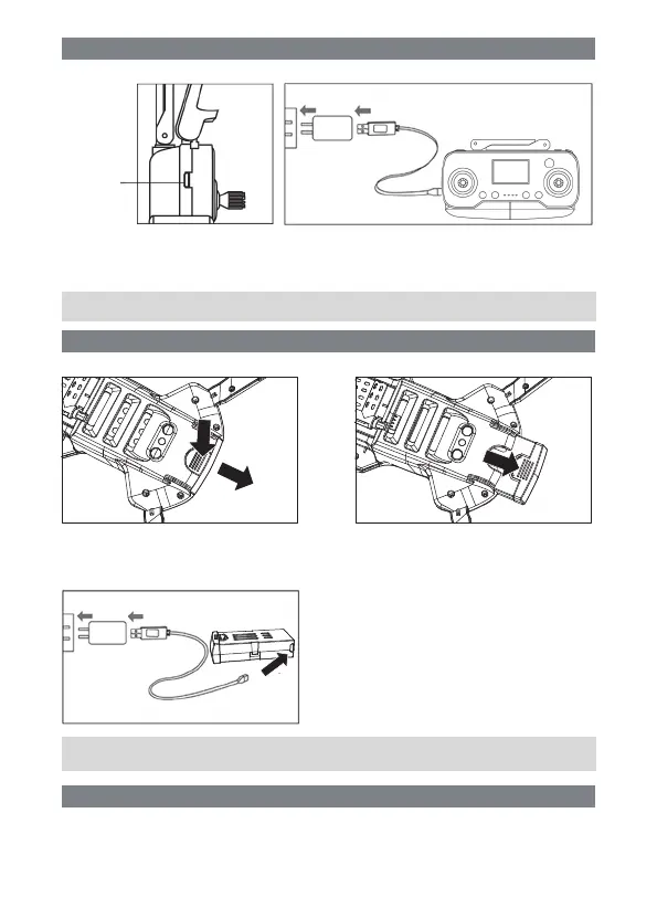 Take out the UAV battery:Press on as shown in Figure 1,pull back and remove the battery upward.