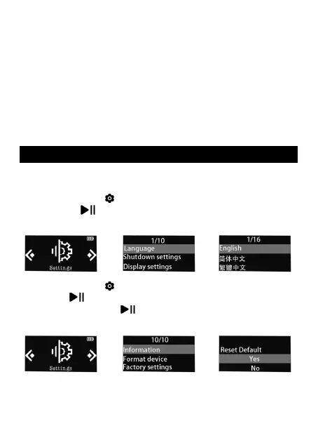荷時の設定に戻します。再び言語を選ぶことができます。