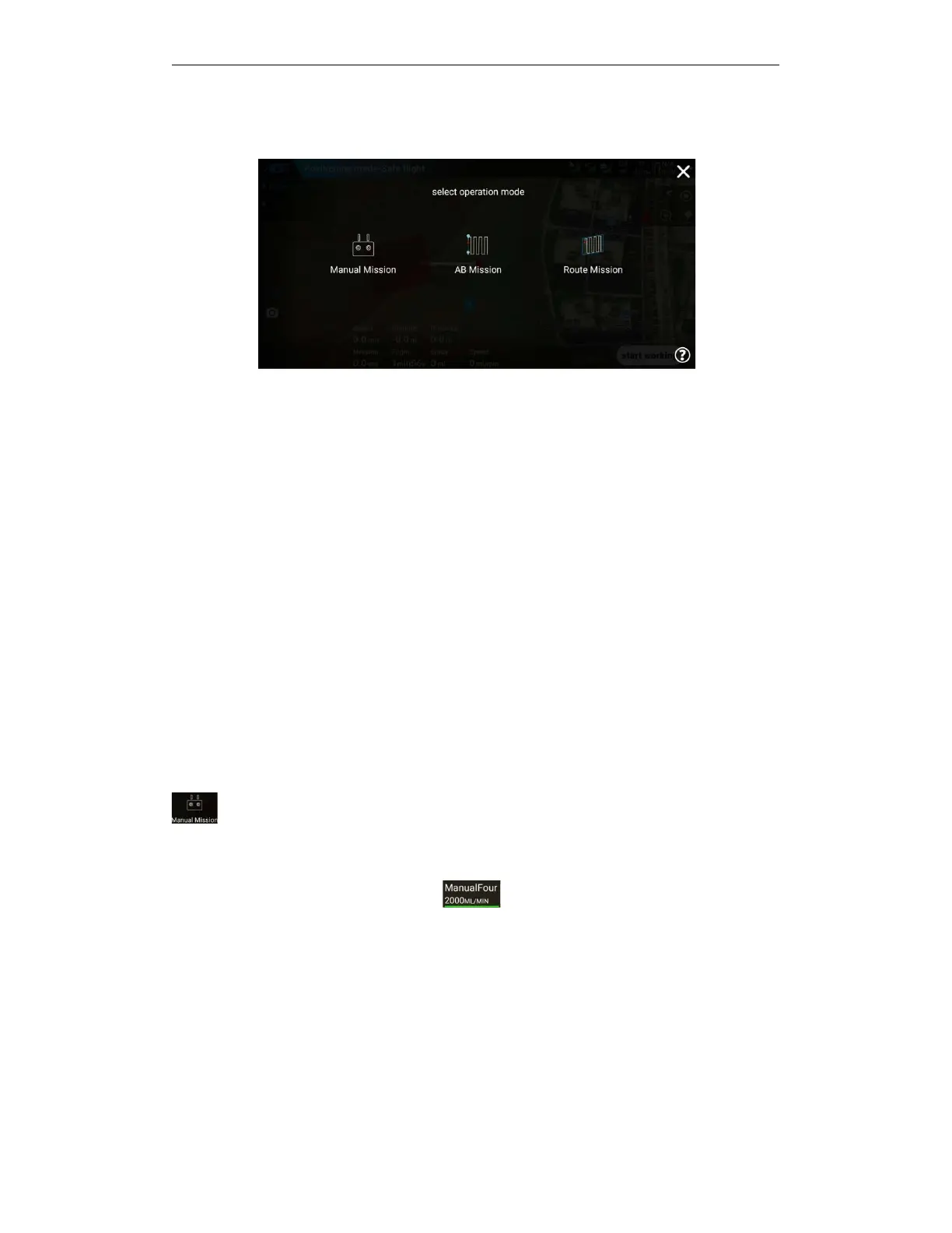 remote control turns on spraying or click "Continue Manual Work" to start spraying and continue