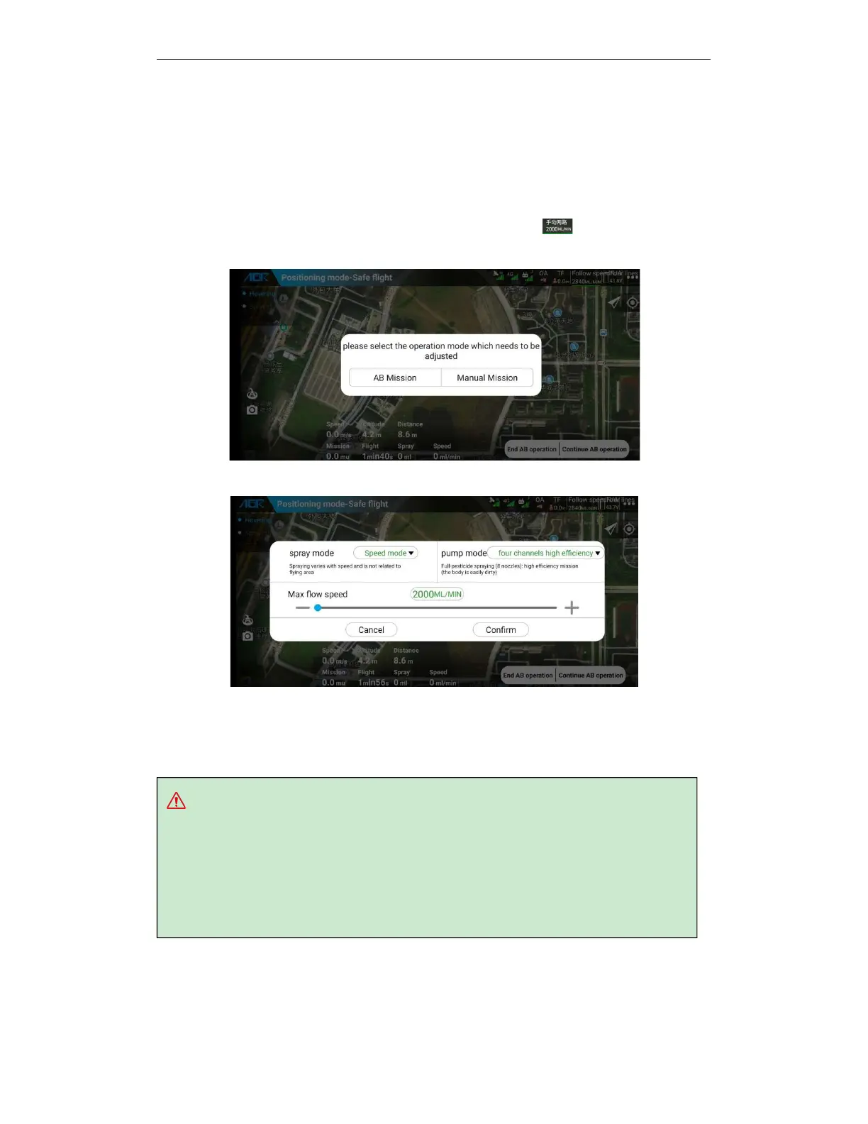 Select manual operation to perform manual spray adjustment in the following pop-up window: