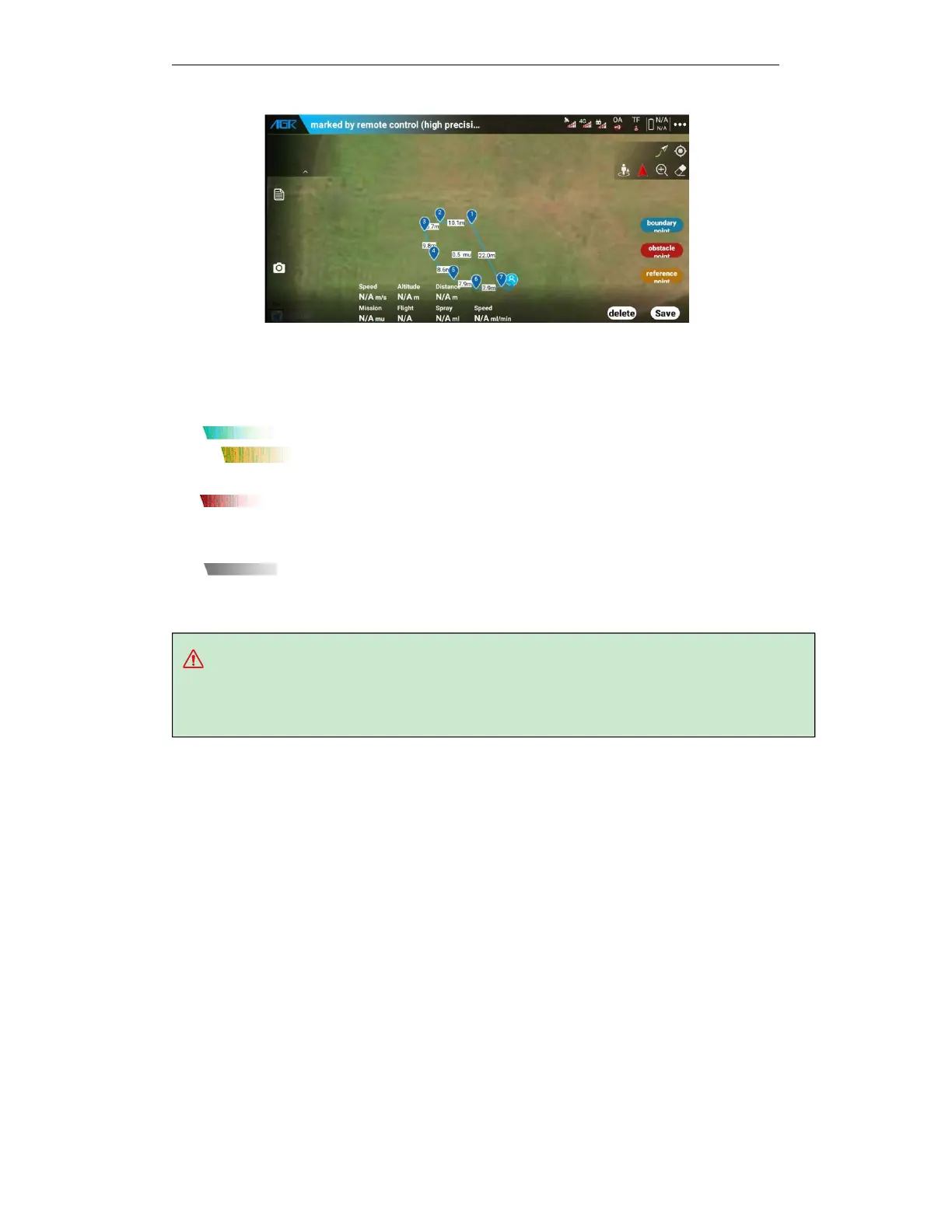 ——select drone marking——manually unlock and take off——fly the drone to the boundary of