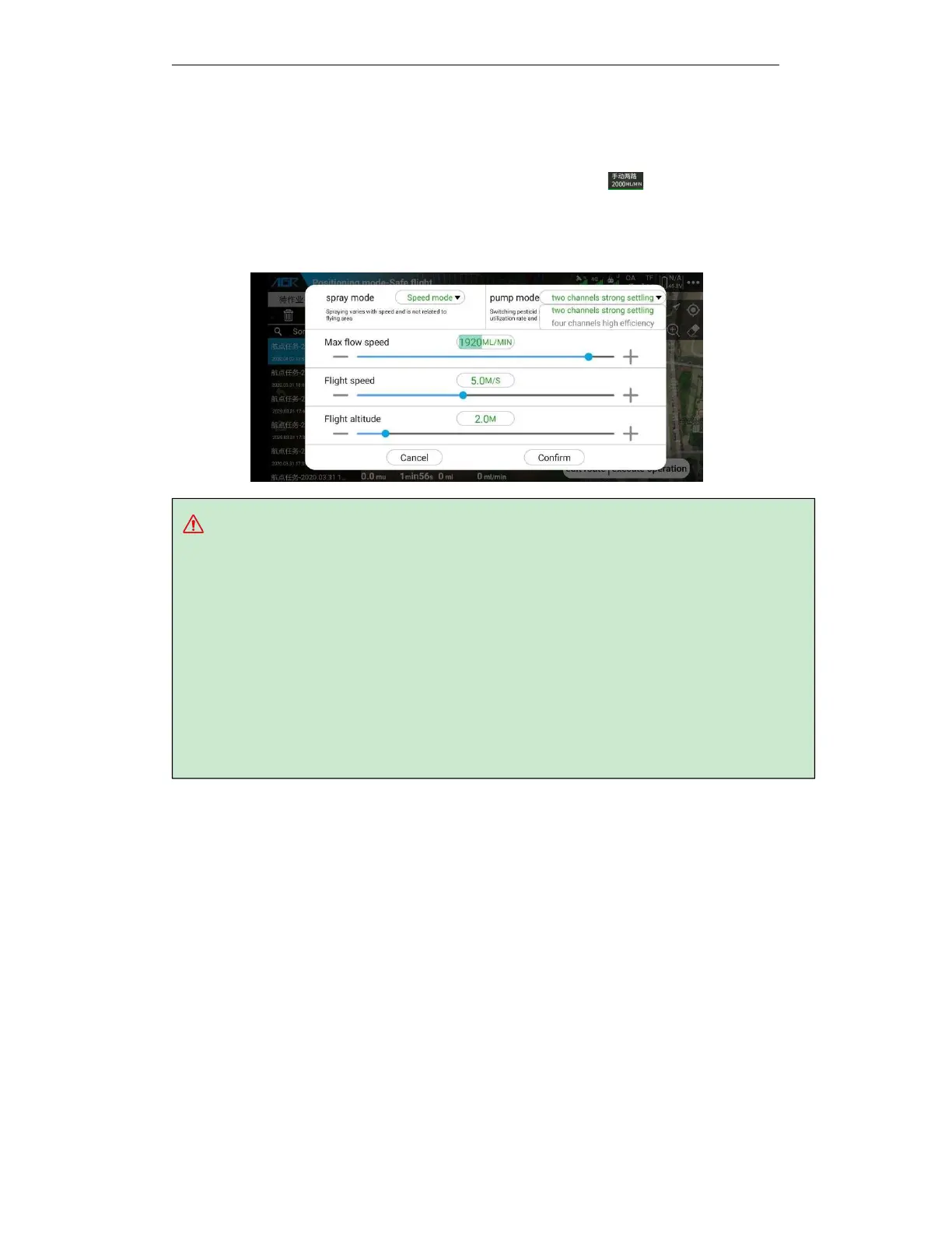 button to call up the spray setting pop-up window to adjust the spray parameters. When the