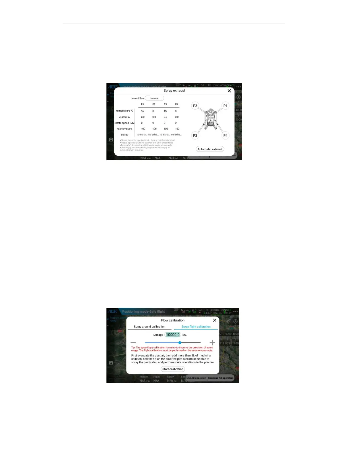 Spraying ground calibration process: pipeline exhaust-place the drone on a horizontal