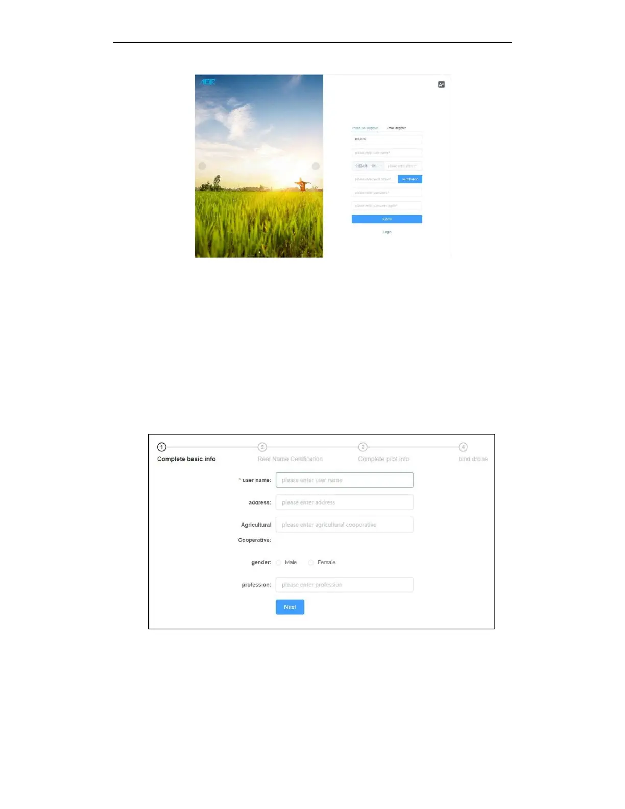 third step fill in the pilot information, and the fourth step is to bind the plant protection drone