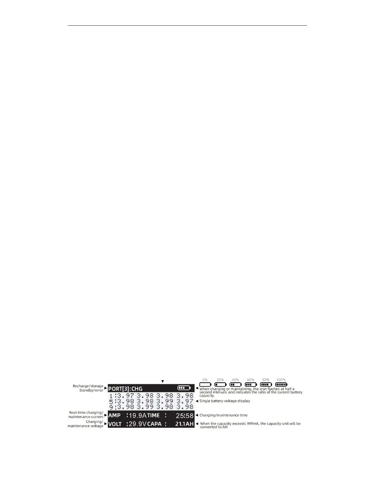 In the maintenance mode, the charger will use a small current to charge, discharge and balance