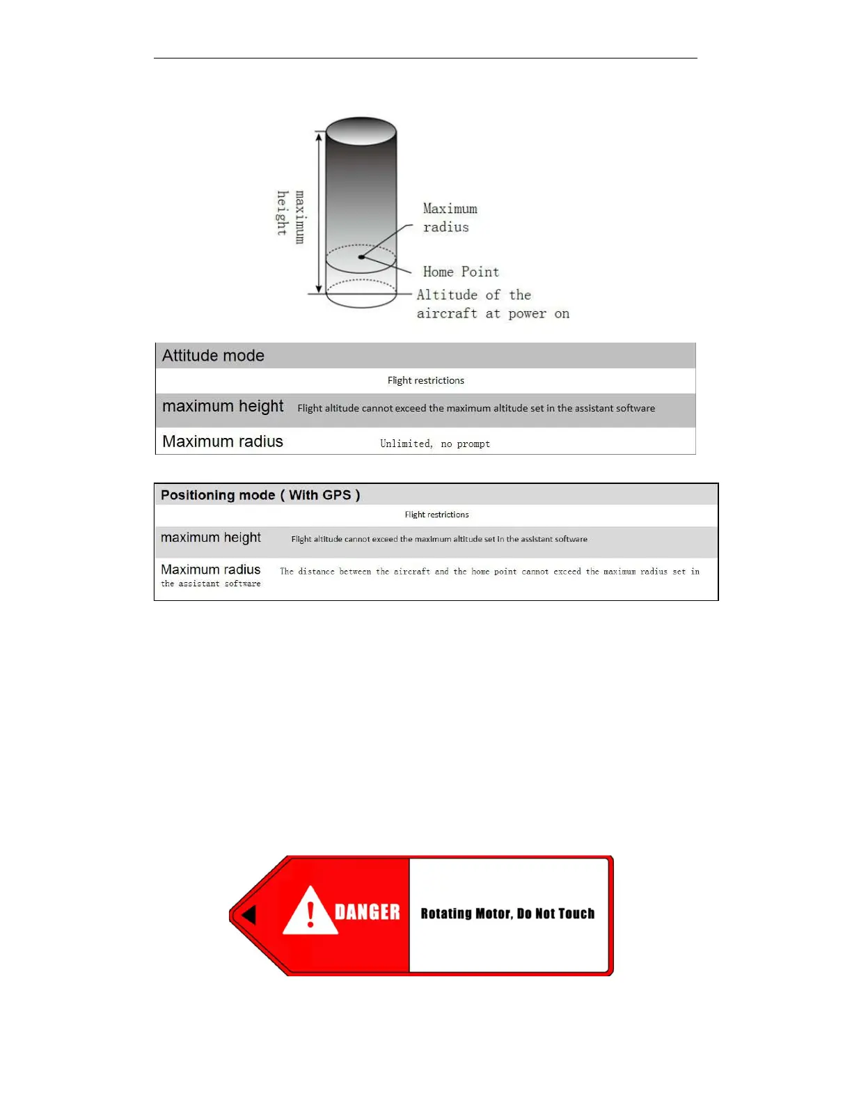 Warning: After the drone rushes out of the restricted boundary due to inertia, the remote control