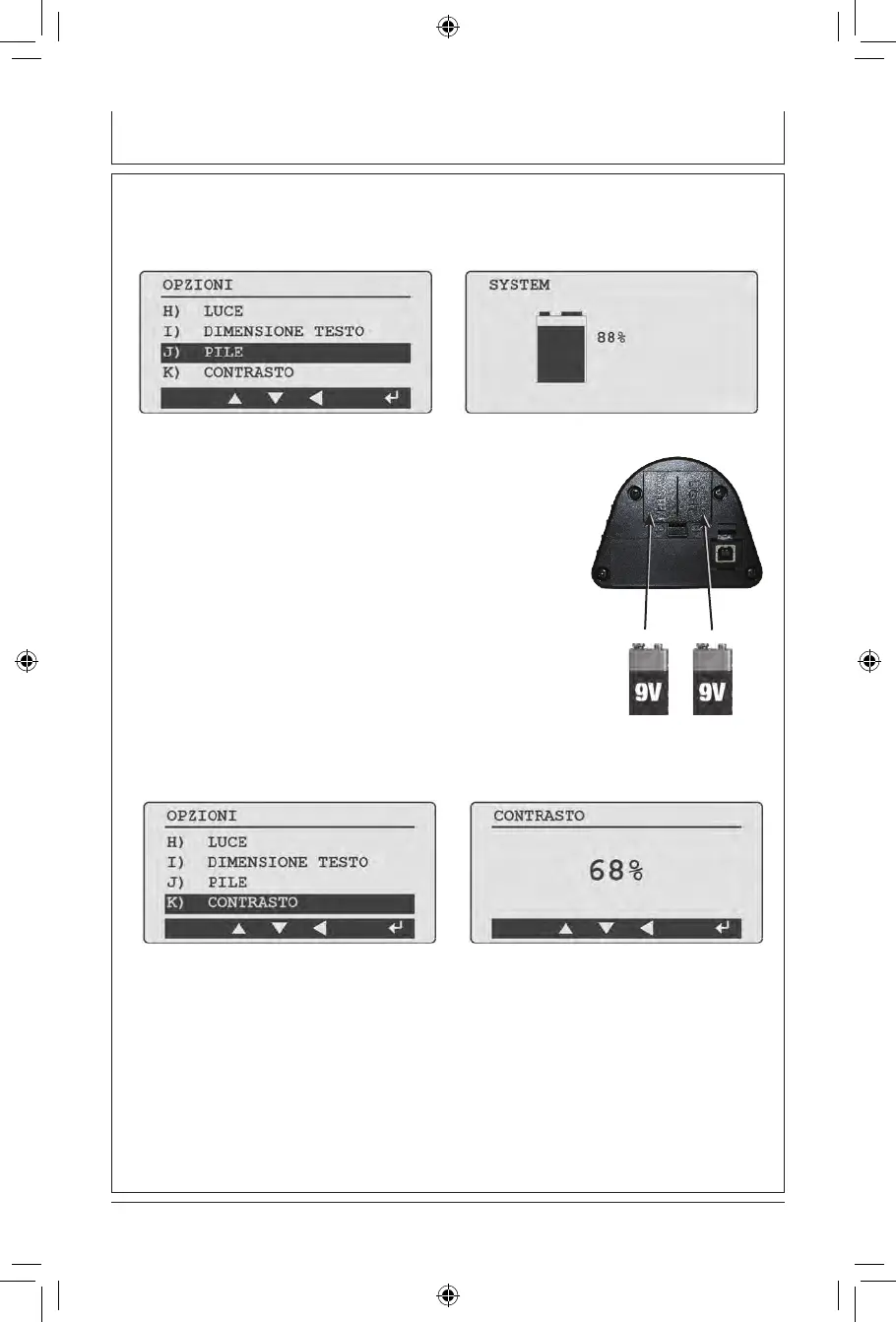 Il contrasto del display può essere aggiustato da 50% a 100%. Aggiustare il livello con