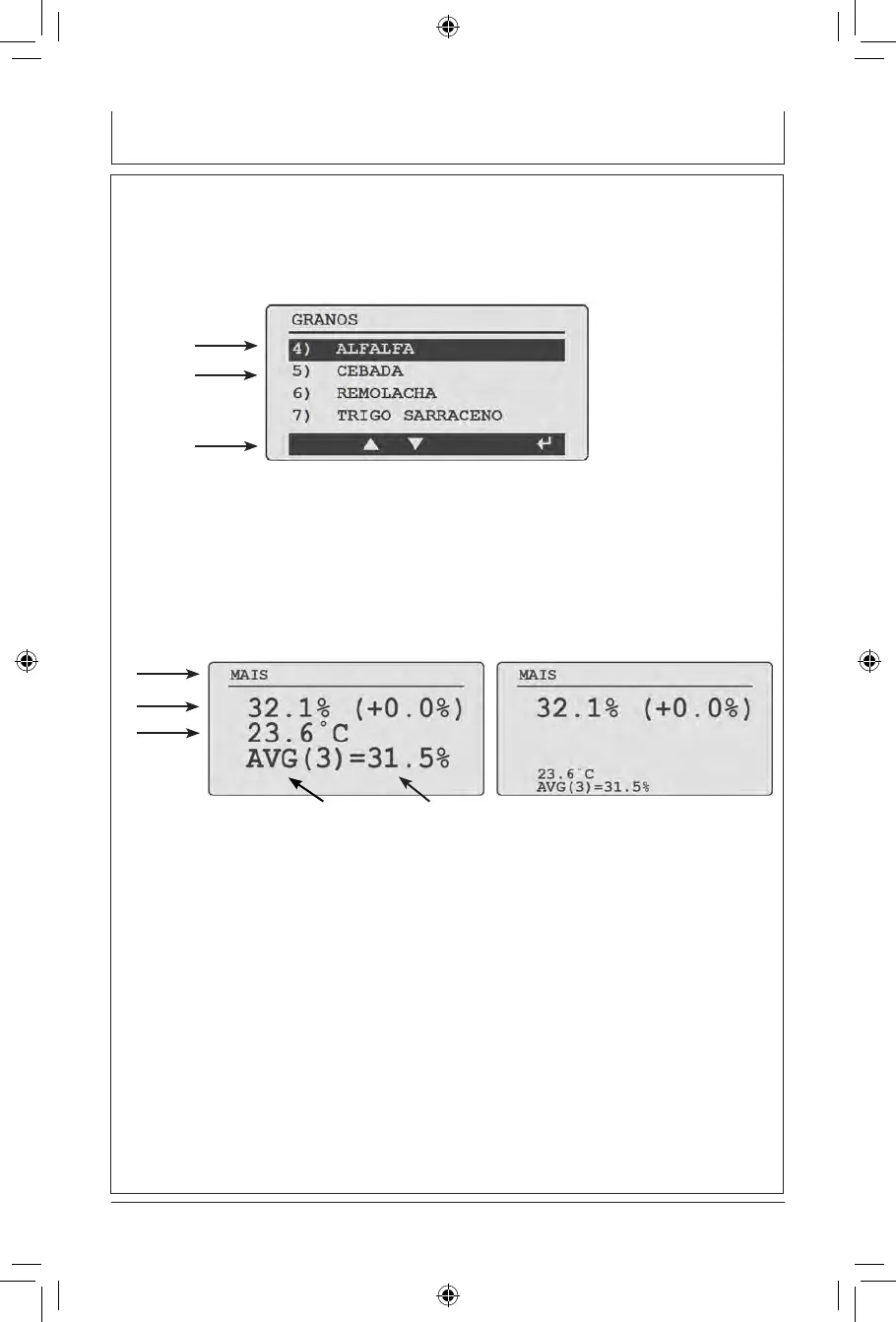 PANTALLAS DE MENÚ (MENÚ DE LOS GRANOS MOSTRADO)