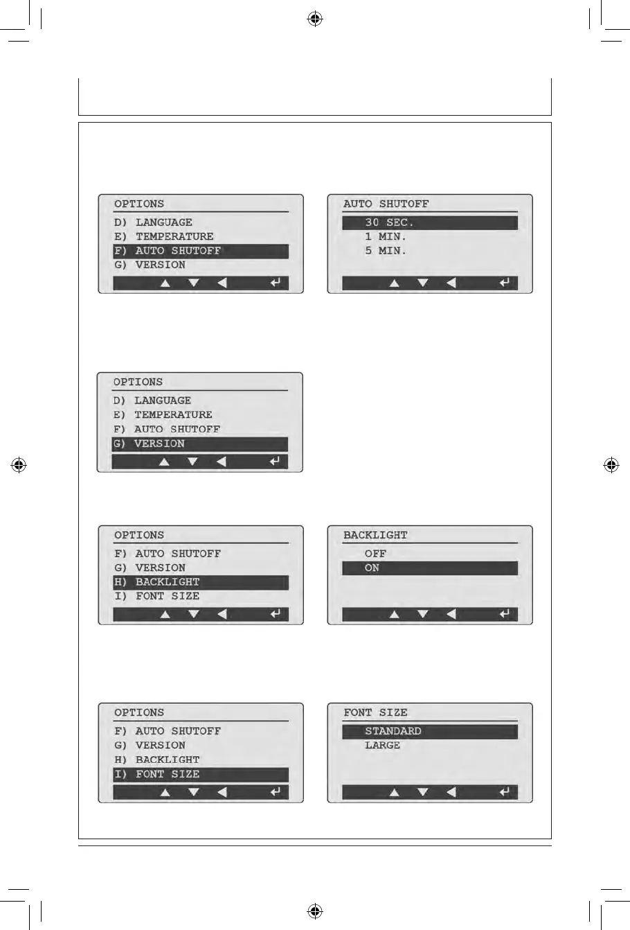 The display and keypad backlight can be turned on or o. Choose by pressing enter.