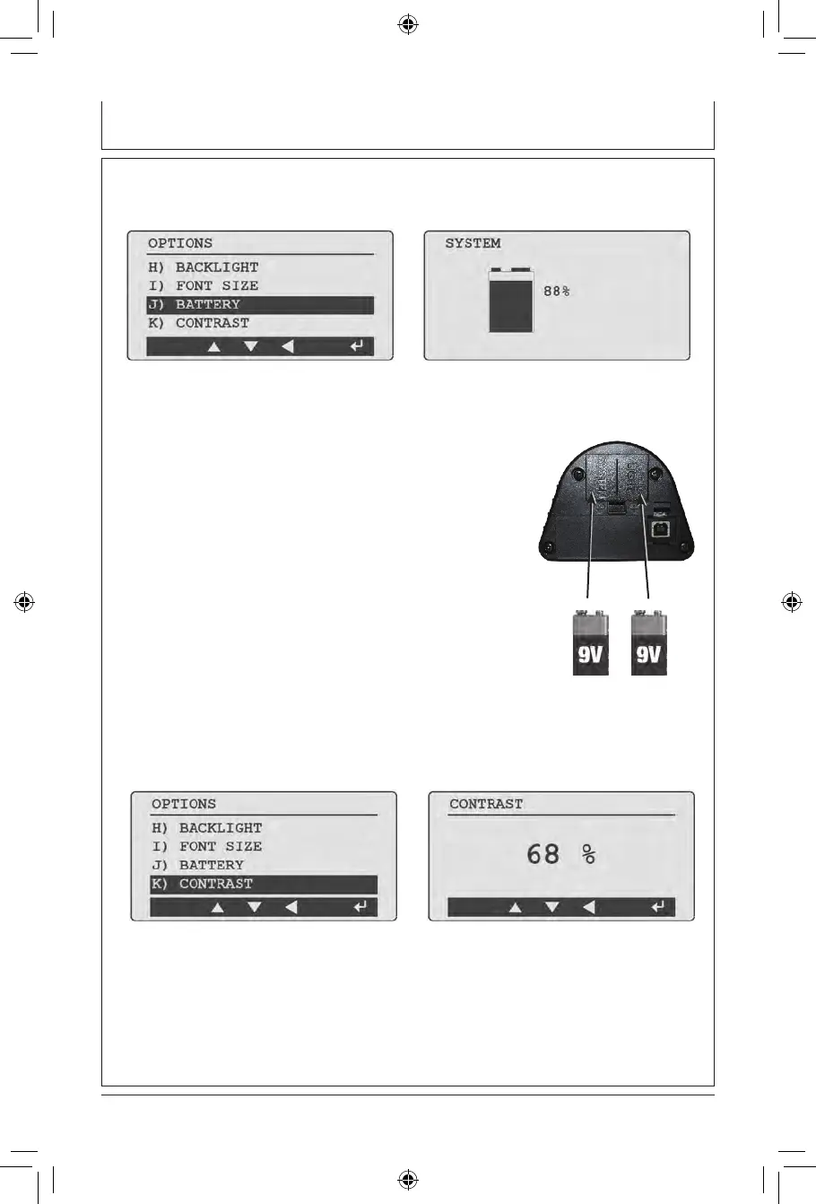 The tester’s display contrast can be adjusted from 50% to 100%. Adjust the contrast
