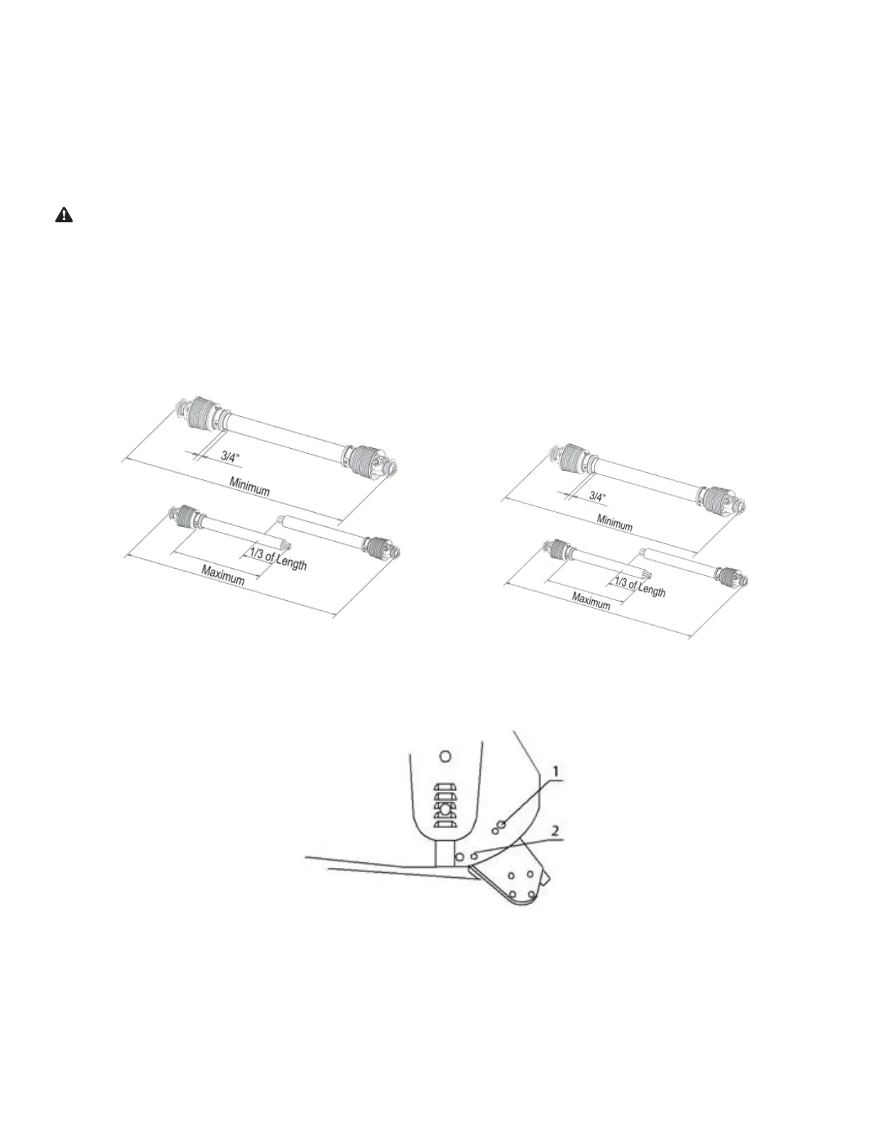 Check that the cardan shaft minimum and maximum length are the ones required by the machine-tractor