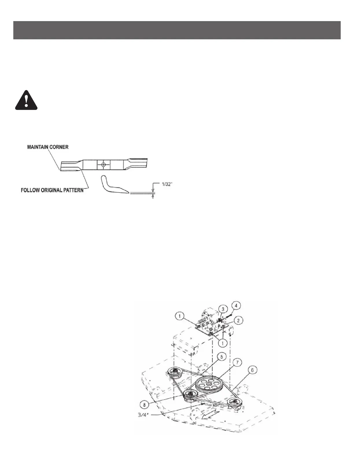 Avoid personal injury! Always support or block the mower when servicing the blades, carrier or any other