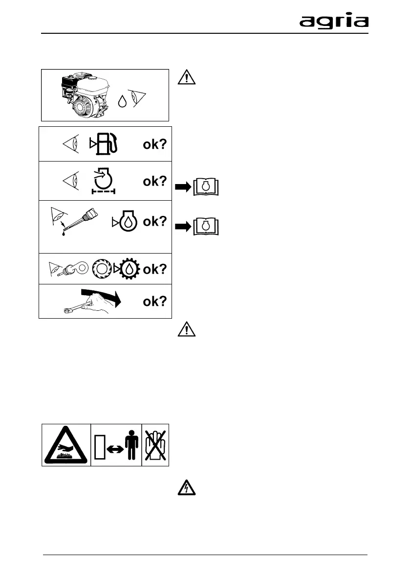 Check the engine for oil and fuel leaks