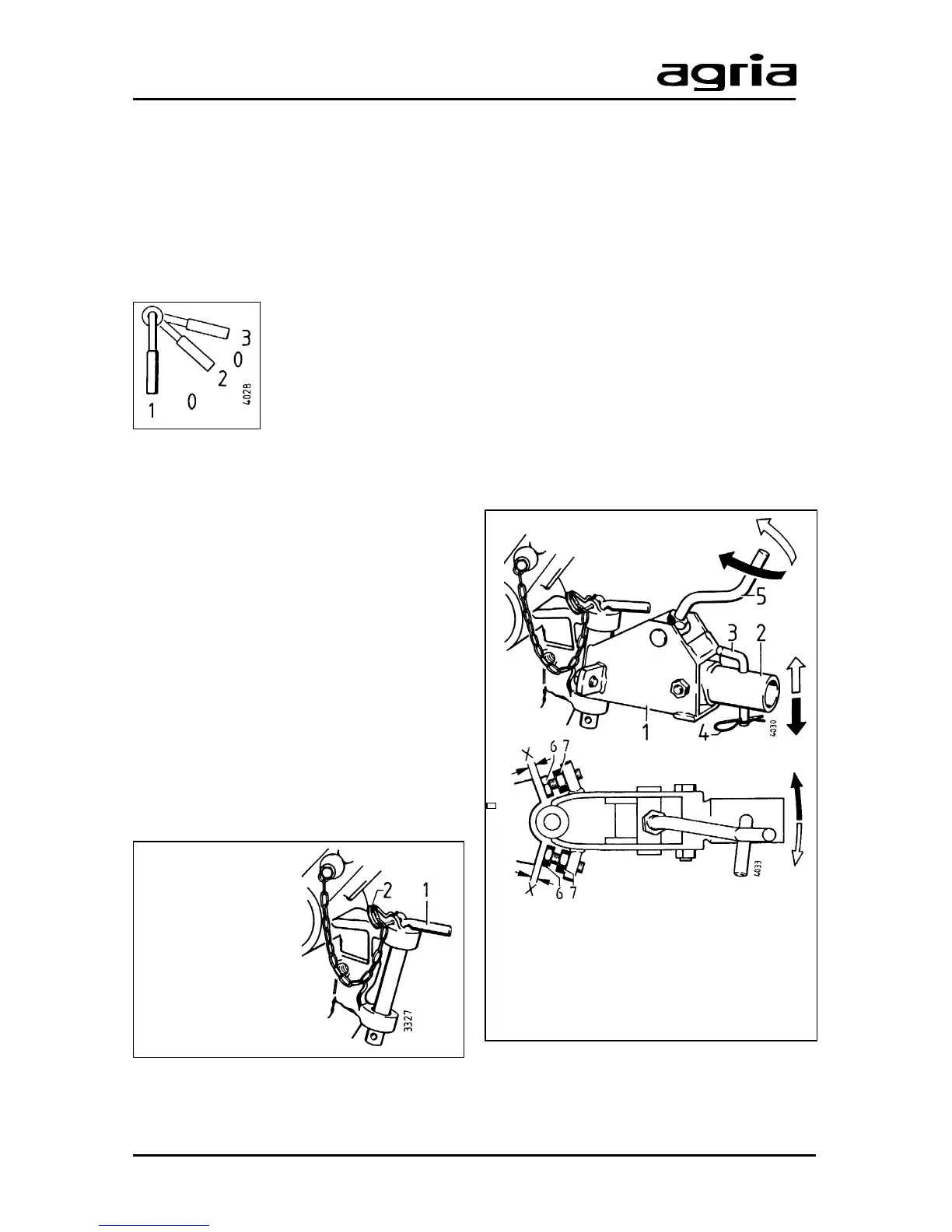 Attach the pin (3) with the locking pin and
