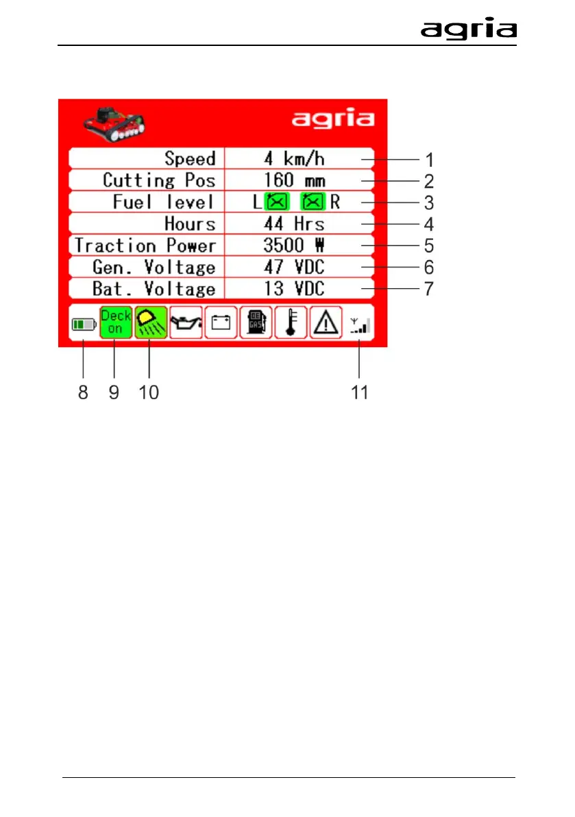 The following machine data and states are shown on the display: