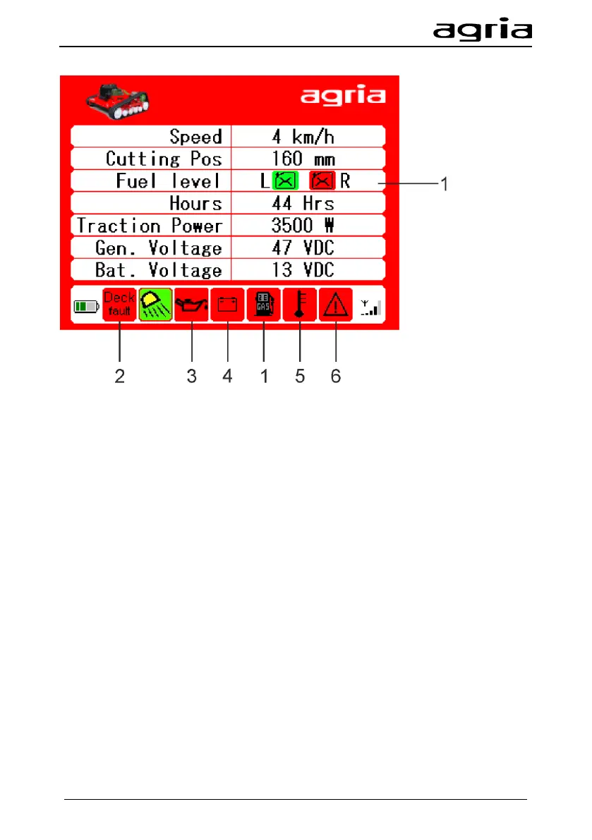 If a field in the menu shines red, there is an alarm or a malfunction.