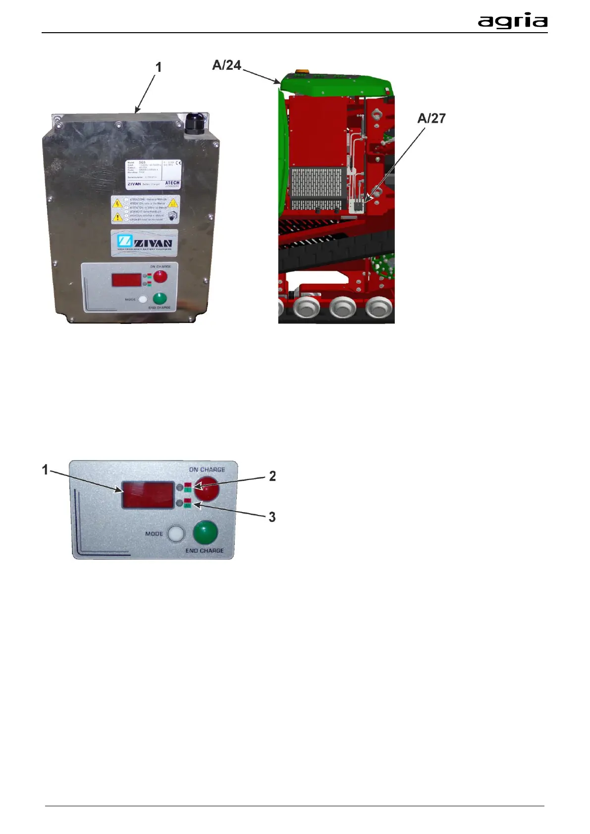 Connect the charging plug of the machine (A/27) to the battery charger.